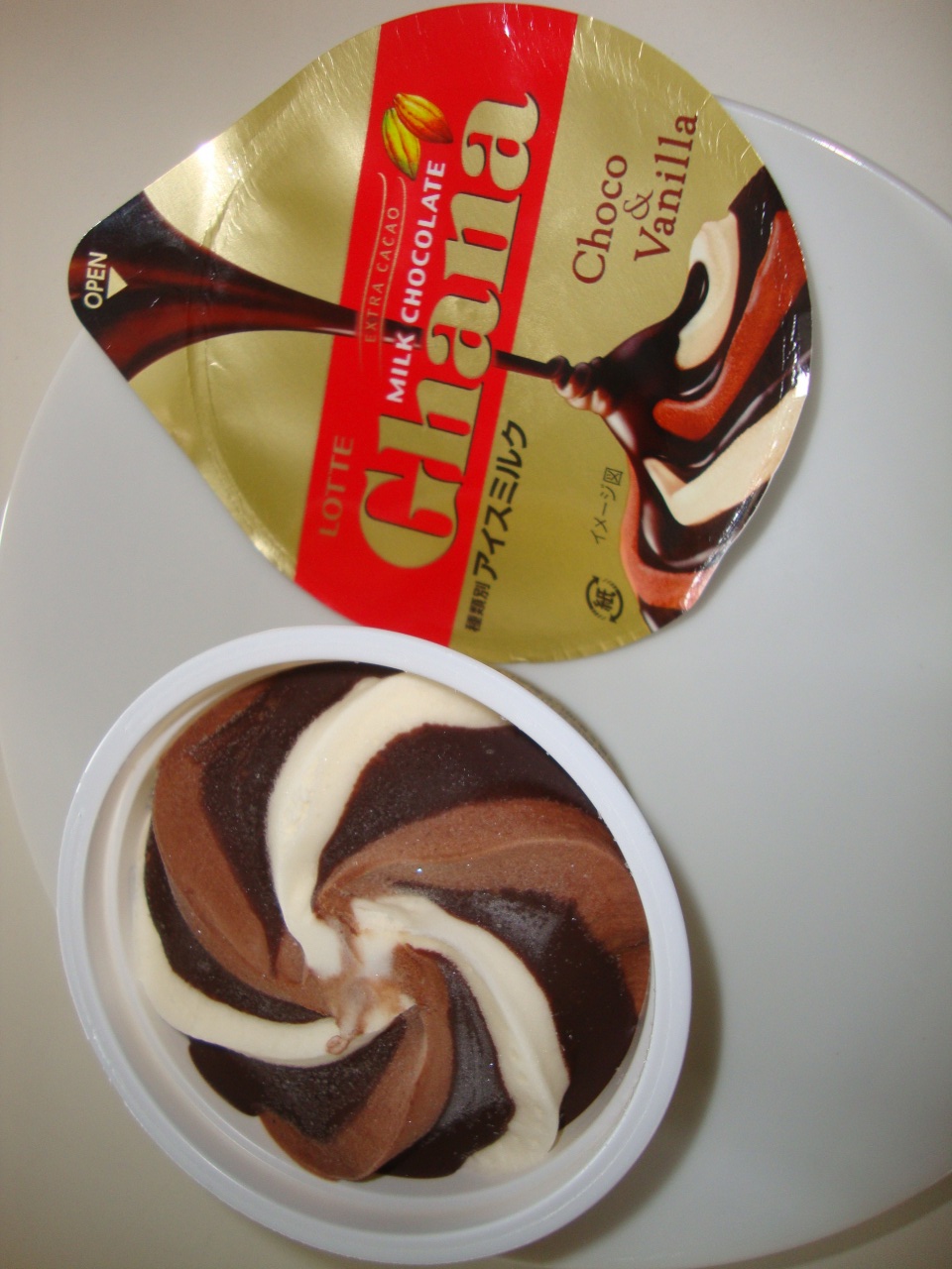 「ガーナ」使用したチョコアイスとミルク感の強いバニラアイスを巻き込んだ2つのアイスに少しビターなチョコソースを加えた満足度の高いカップアイスです。
