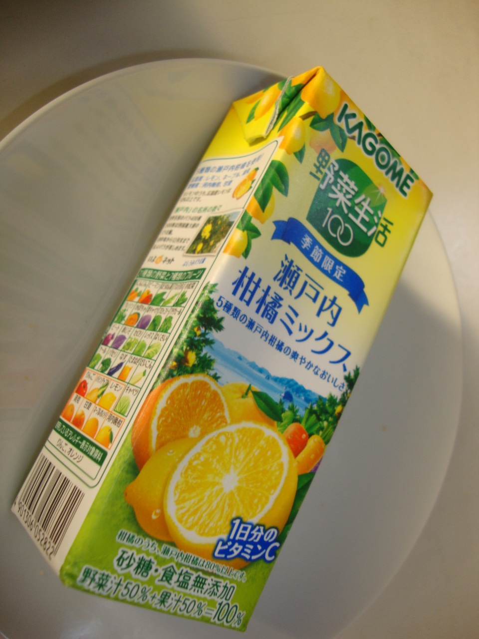 瀬戸内産の5種類の柑橘を使用した爽やかなおいしさ。広島産レモン、ネーブル、清美と愛媛産河内晩柑、甘夏を使用した野菜&果実100%ジュースです。