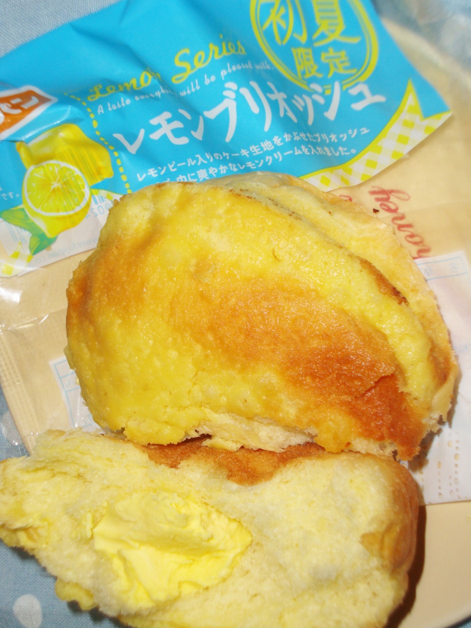 レモンピール入りのケーキ生地をかぶせたブリオッシュタイプ。中に爽やかなレモンクリームを入れました。