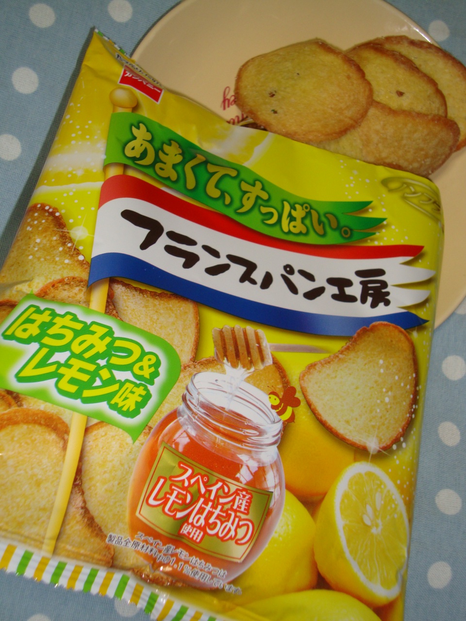 スペイン産レモンはちみつを練り込んだフランスパンをスライスして焼き上げ、はちみつレモン風味パウダーをふりかけています。レモンの酸っぱさの中にはちみつの甘さを感じる爽やかな味に仕上げました。