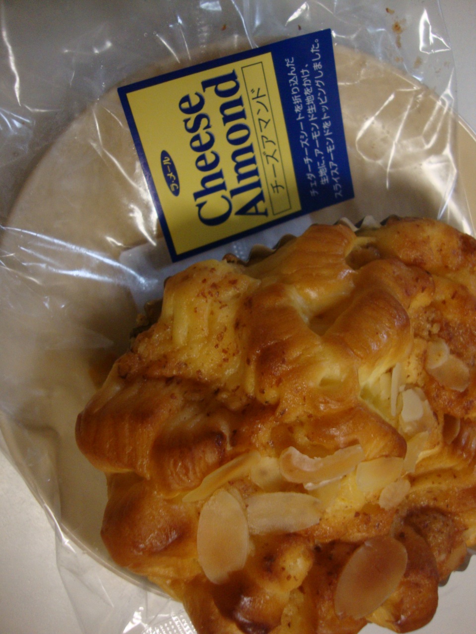 チェダーチーズシートを折り込んだ生地に、アーモンド生地をかけ、スライスアーモンドをトッピングしました。