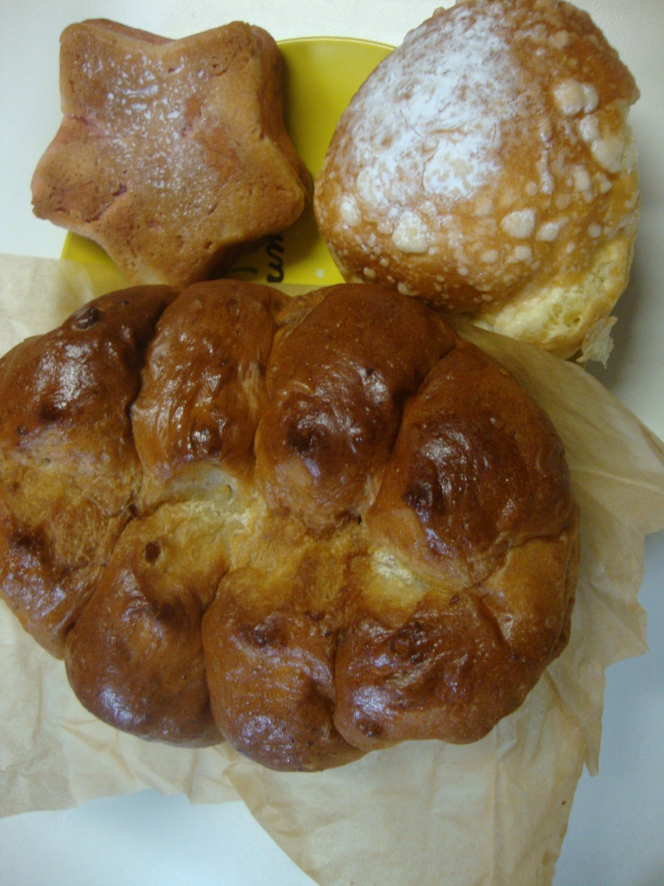 大きいパンはクルミ入りで、他の2つは中にクリームが入っているタイプで美味しかった。