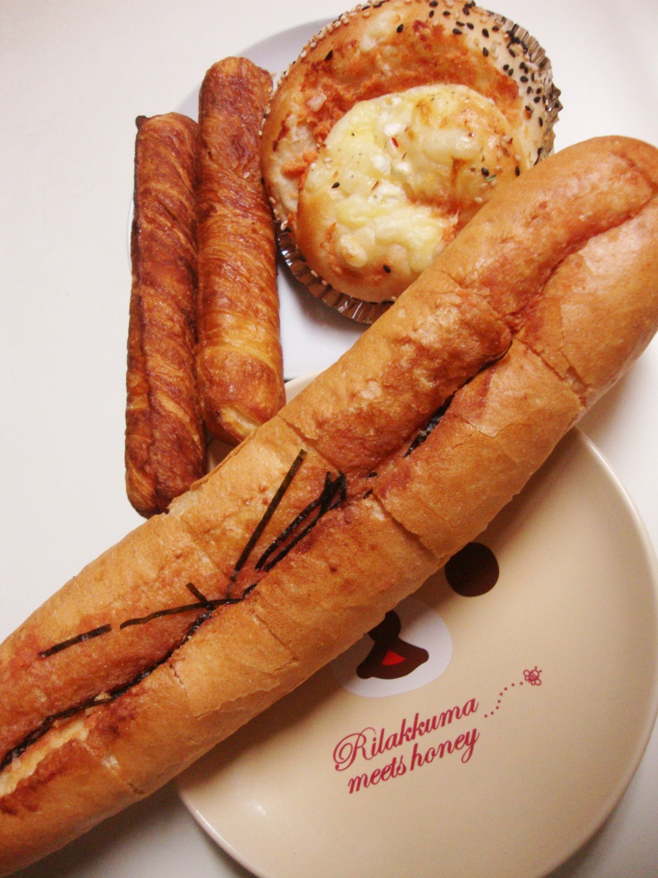 九州のこだわり明太フランス、サーモンシュネッケ、チェルキー(プレーン)×2。
