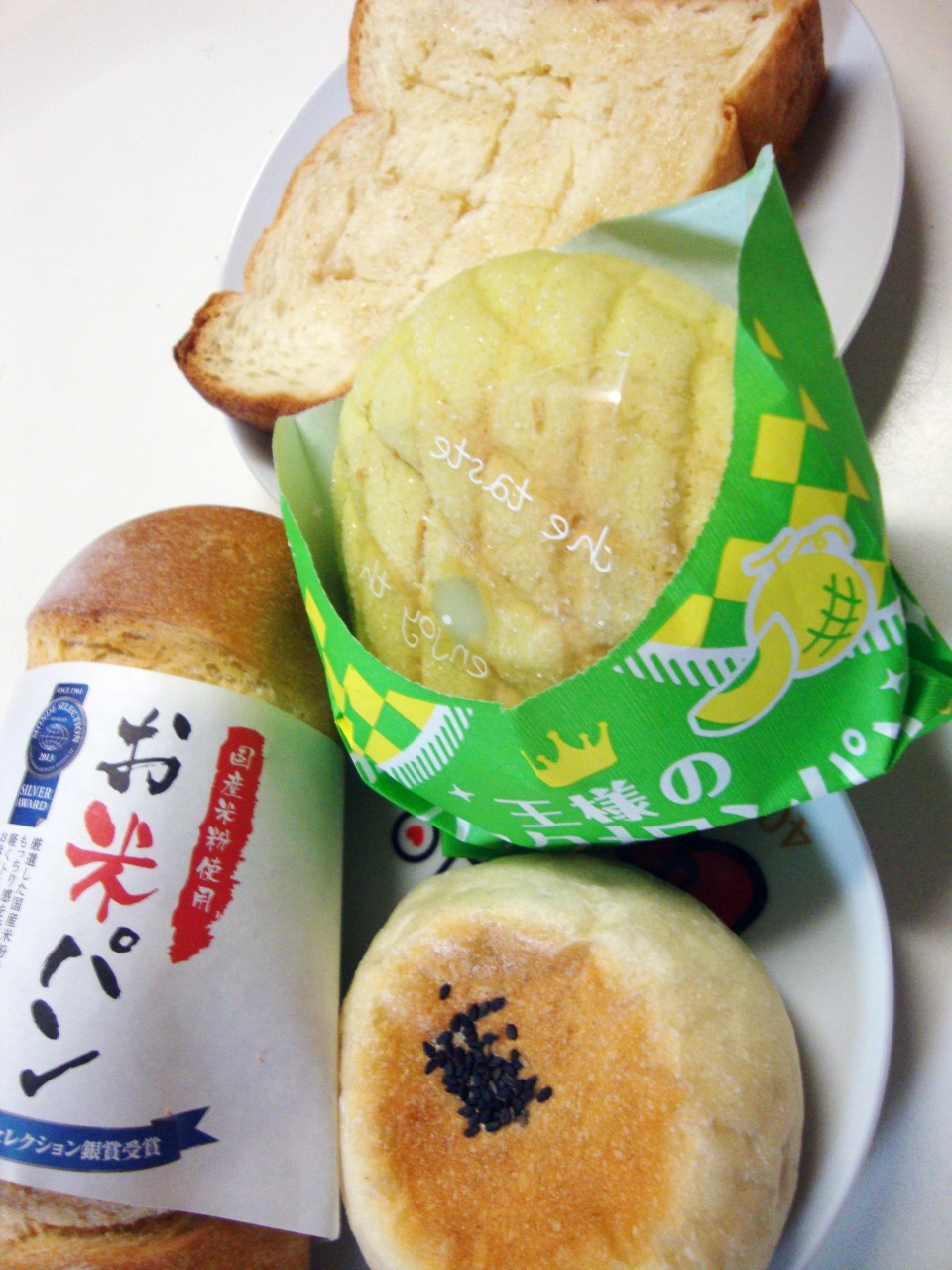 お米パン、餡パン、王様のマスクメロンパン、ハニートースト。