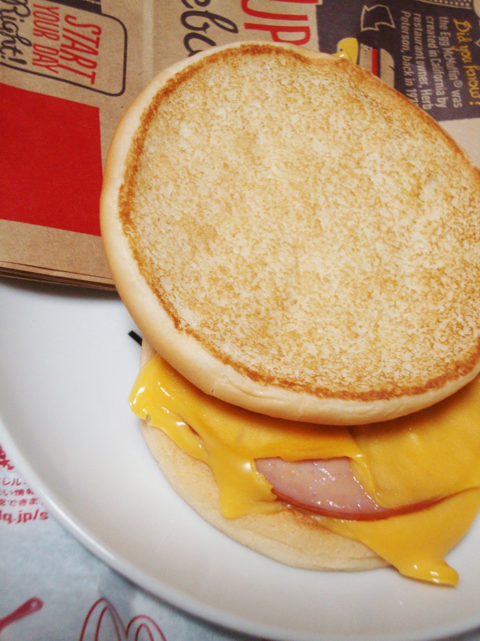 両面を香ばしくトーストしたバンズに2枚のチェダーチーズとカナディアンベーコン(ロースハム)を挟んだ、期間限定メニューです。