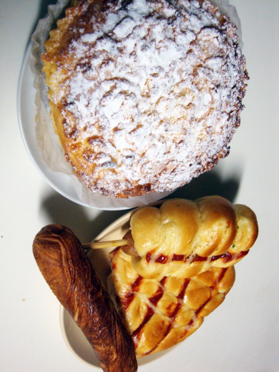 ブリオッシュ・ココ、あらびきポークフランク、タマゴフィリングとツナ入りのパン、チェルキー。