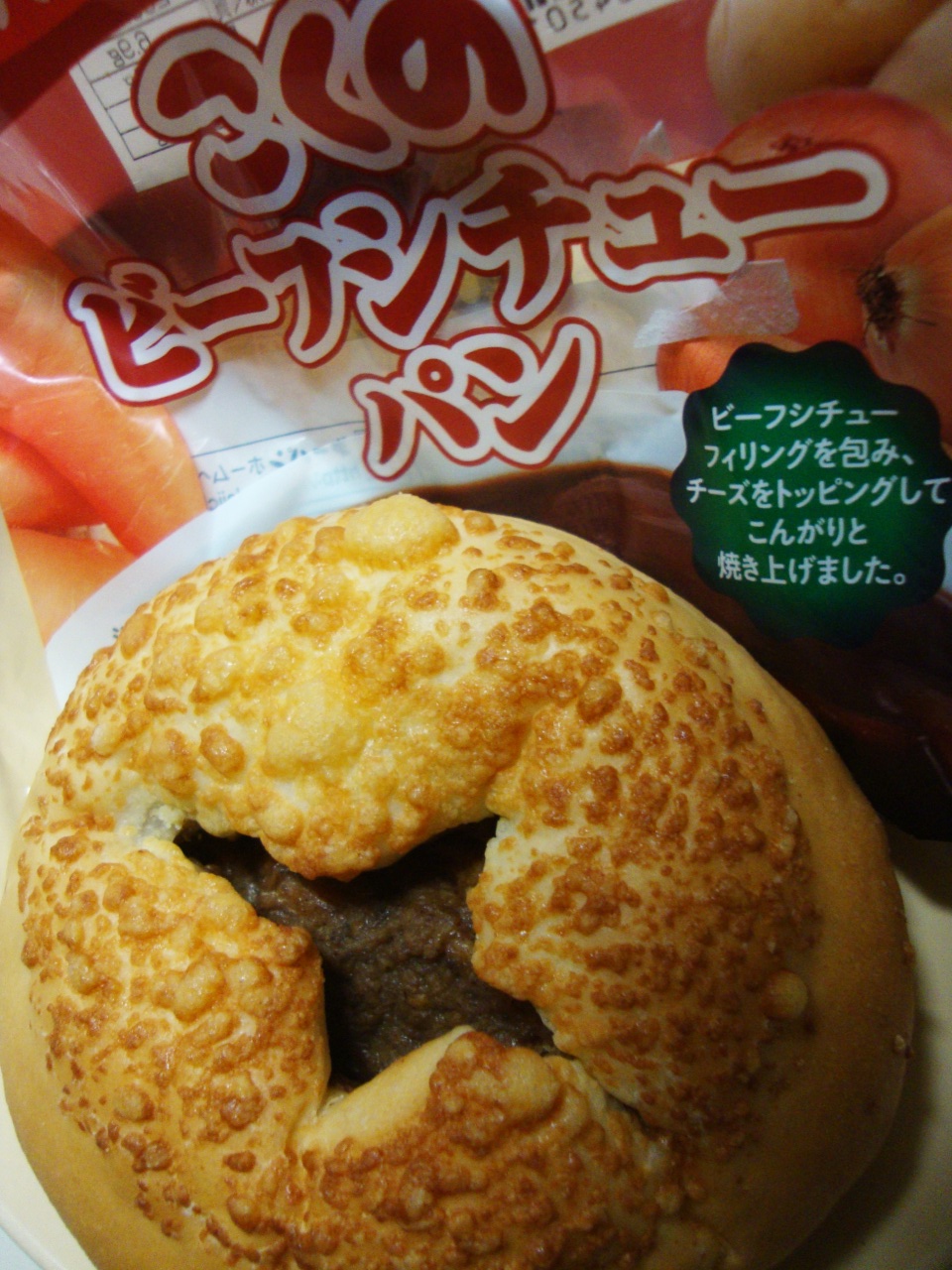 ビーフシチューフィリングを包み、チーズをトッピングしてこんがりと焼き上げました。