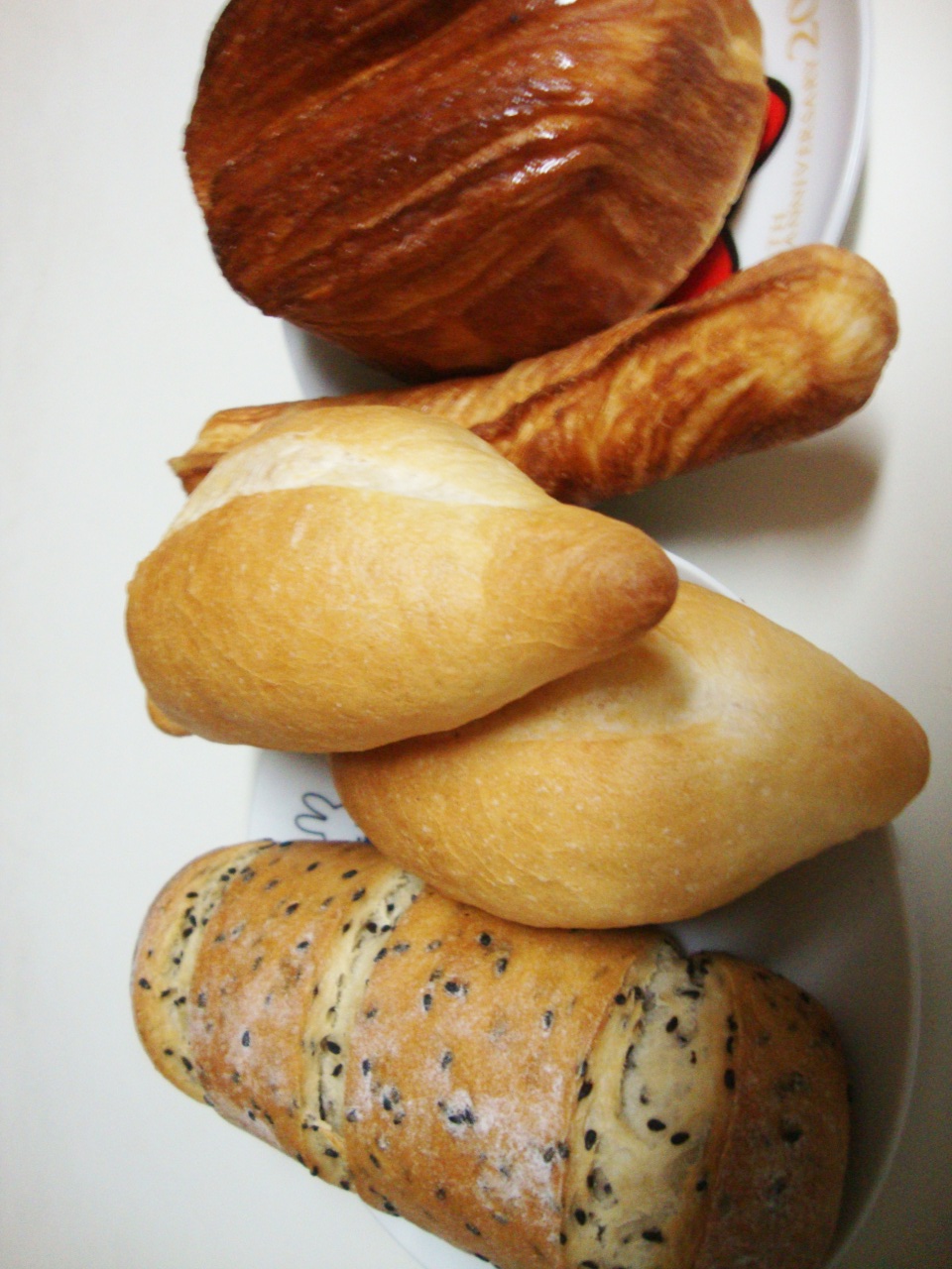 ツインクル、チェルキー(プレーン)、ミニフランス×2、黒ごまお米パン。