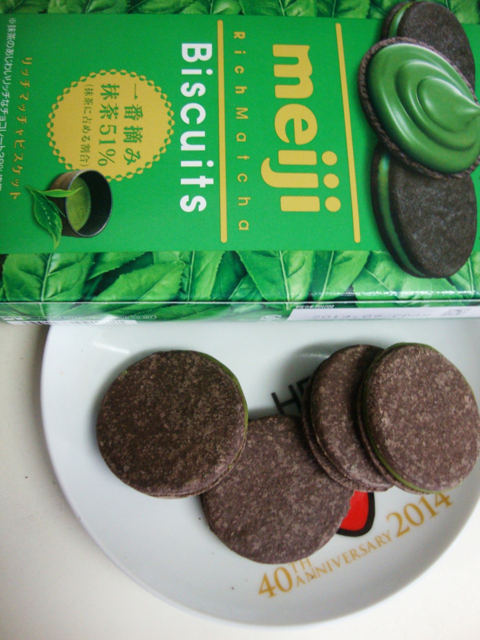 一番摘み抹茶を51%使用し(抹茶に占める割合)、濃いチョコレートの味わいをギュッとサンドした満足感たっぷりのビスケットです。