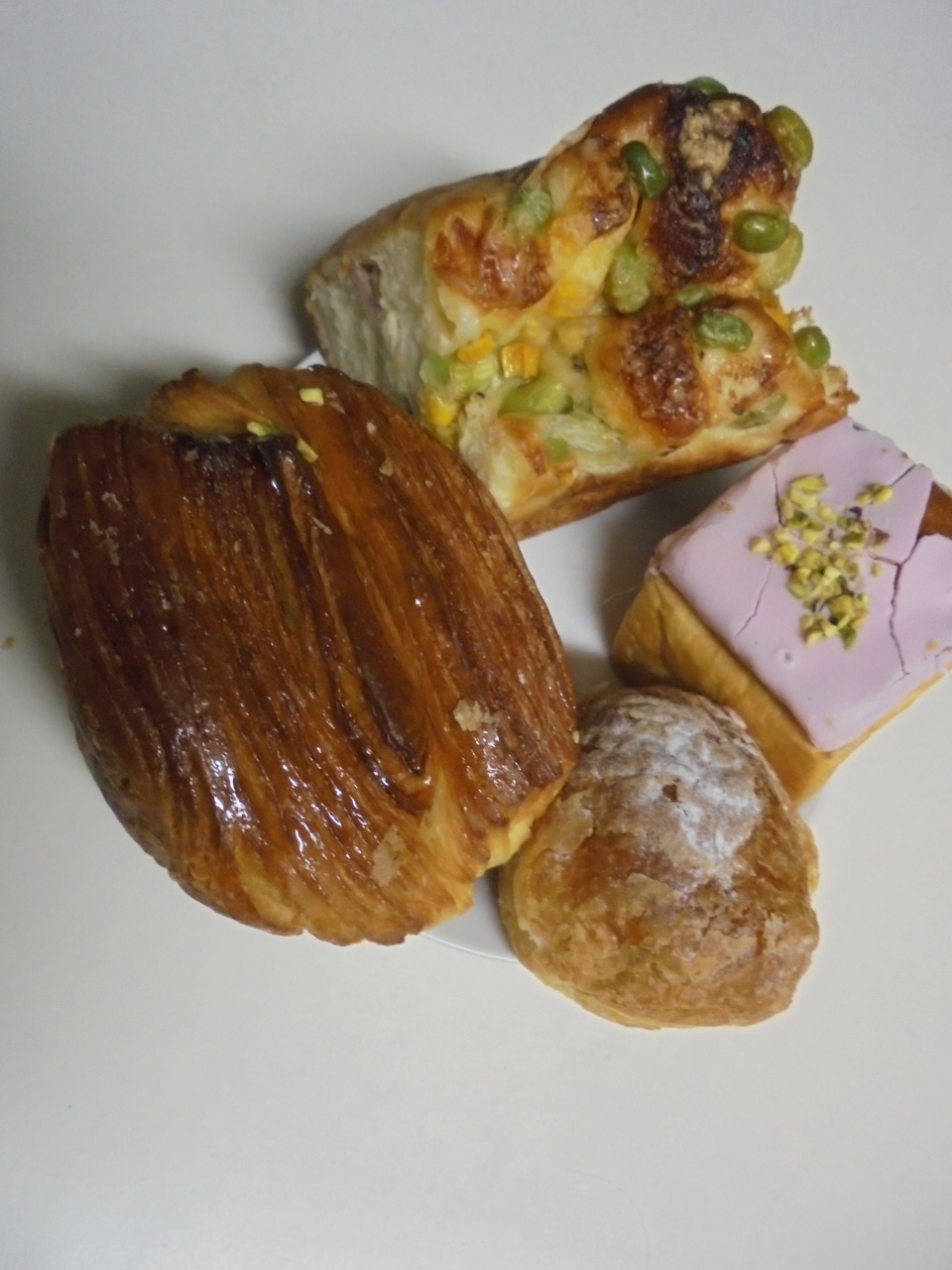枝豆とコーンのパン 1/2 、ももぐるときゅーぶ、ツインクル、クリーム入りのパン。