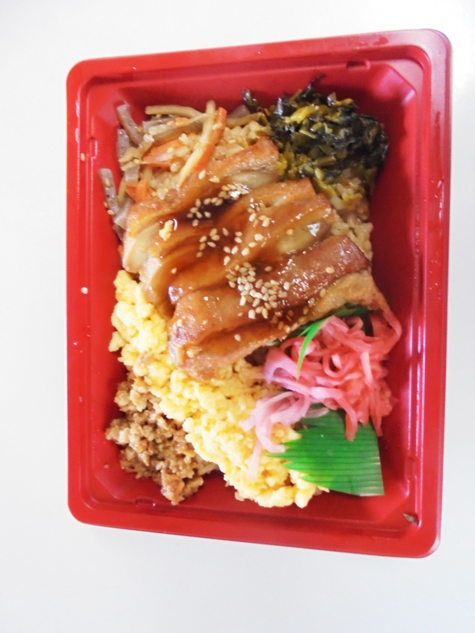 人気の鶏照焼弁当の「鶏そぼろ」がおいしくなりました。食感があり、鶏のうまみが凝縮した鶏そぼろに改良しました。メインのジューシーな鶏もも肉はそのままに、玉子・高菜・きんぴら・紅生姜をくわえて彩り豊かに仕上げました。