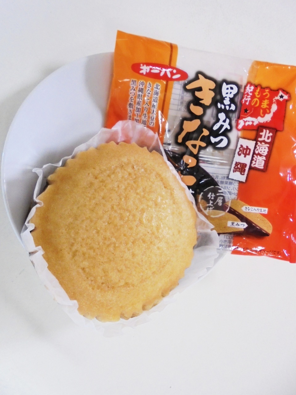 北海道産大豆使用のきなこ入りの生地に沖縄県産加工黒糖使用の黒みつを敷きました。
