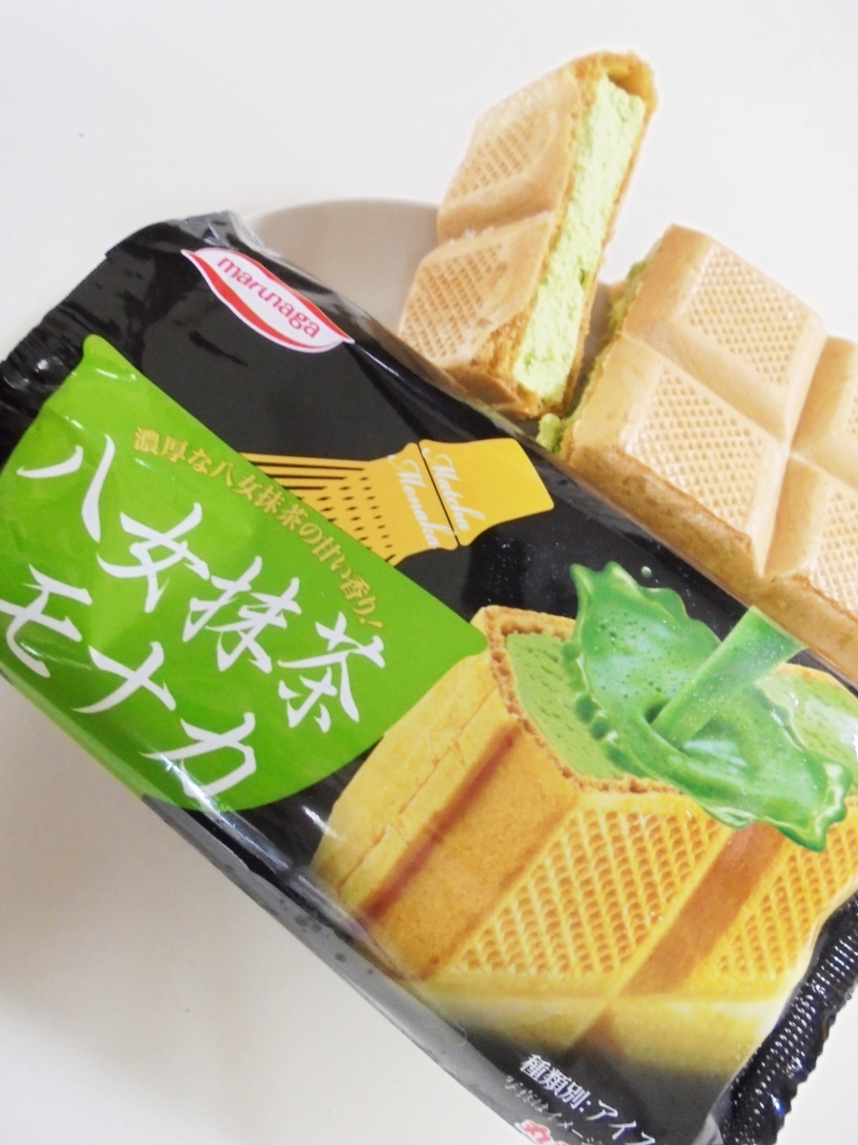 抹茶アイスとセミシュガーモナカのほろ苦くまろやかな組み合わせです。