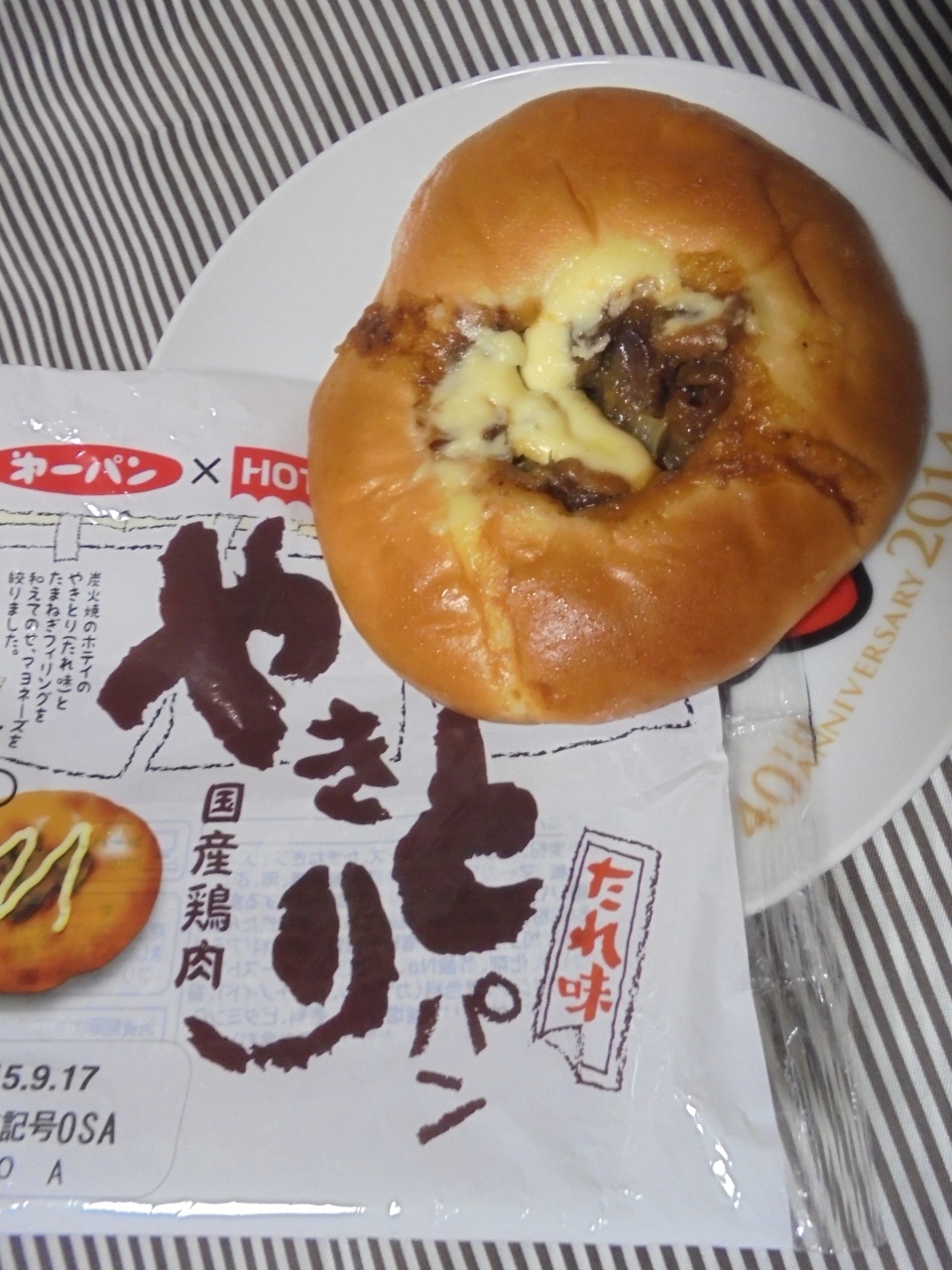 炭火焼のホテイのやきとり(たれ味)とたまねぎフィリングを和えてのせ、マヨネーズを絞りました。