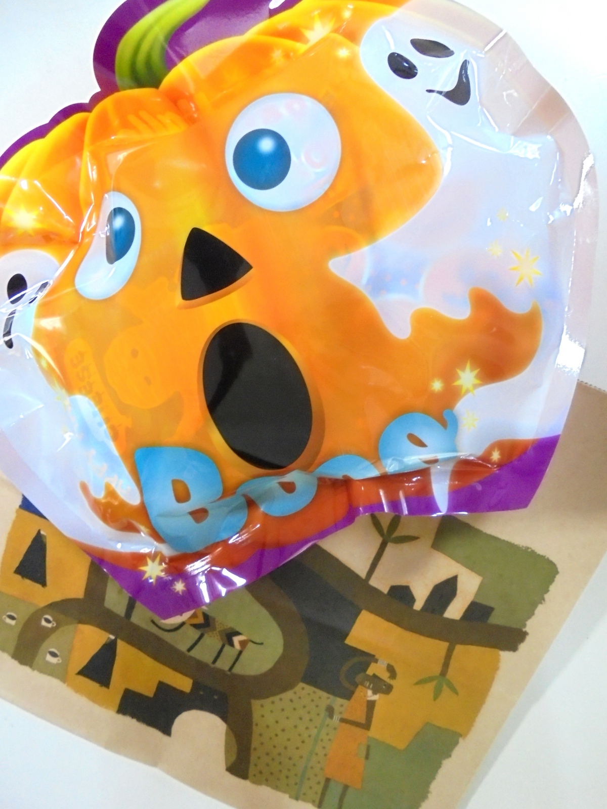 ハロウィンカボチャのパックの中にバラエティーに富んだ小菓子が入っています。ココアクッキー4枚、ラムネ3個、マシュマロ8個、コーンスナック(ピザ味・チーズ味)各1袋入り。
